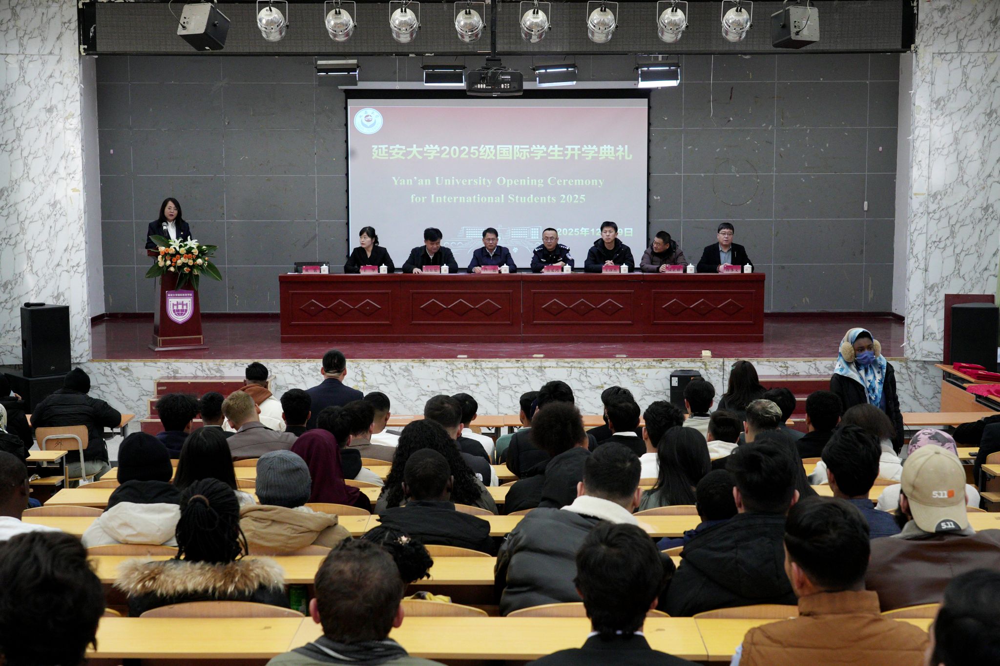 12月29日下午,我校2025级国际学生开学典礼在杨家岭校区克阿楼小礼堂举行。校党委委员、副校长吕磊出席典礼并致辞。延安市出入境管理处处长雷延鸿、我校后勤处处长高东旭、教务处副处长王华、学生处副处长王彦杰、延安医学院副院长张正祥、国际交流与教育学院全体人员,部分任课教师和全体2025级国际学生参加开学典礼。开学典礼由学院院长成铭主持。