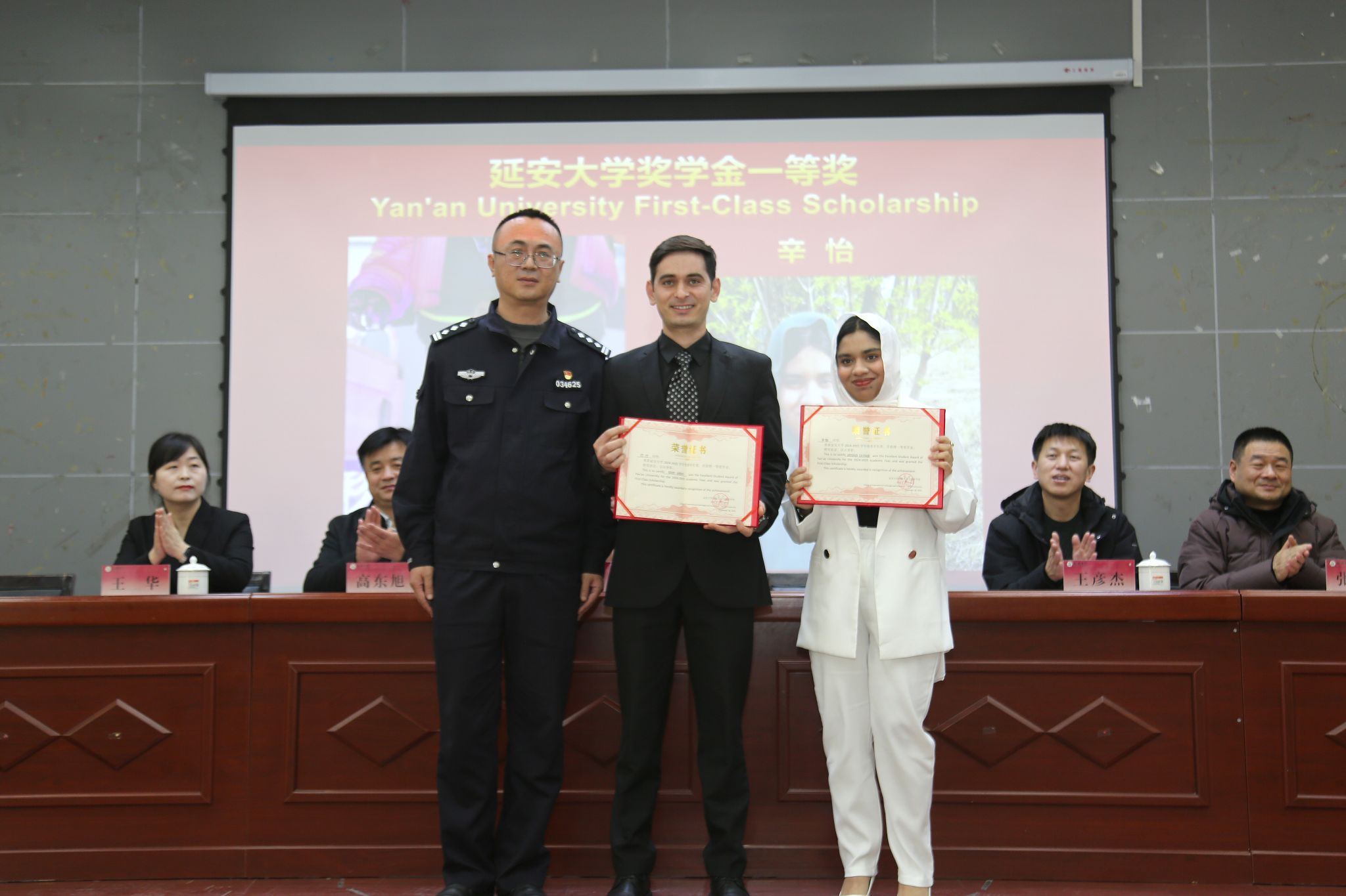 典礼上,国际教育学院副院长许多文宣读了2024-2025学年三秦奖学金及校内国际学生奖学金获奖名单,与会领导为获奖学生颁发了证书。吕磊为新生代表赠送了校徽。