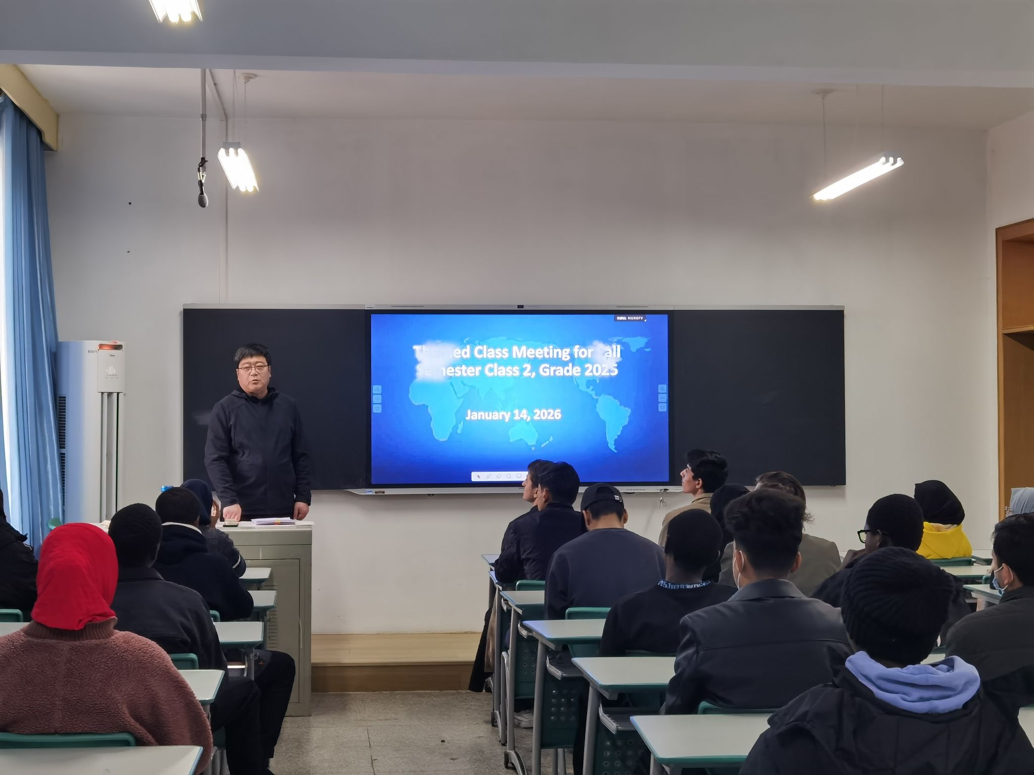 此前,学院制定了《国际教育学院2026年寒假留学生管理方案》。本次寒假安全教育专题班会,既是国际学院落实校园安全管理工作的重要举措,也是关爱留学生成长的具体体现。通过系统全面的安全宣讲,进一步拧紧了学生寒假安全“思想弦”,为全体学生度过一个平安、健康、愉快的寒假奠定了坚实基础。下一步,国际教育学院将持续做好寒假期间学生安全管控工作,加强留校学生服务保障,全力守护学生假期安全。